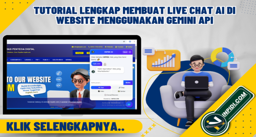 Saat ini banyak website pribadi maupun perusahaan sudah memakai LiveChat Ai untuk mencari informasi secara otomatis. Salah satu pilihan yang bisa digunakan adalah Gemini API (Google AI). Dengan Gemini, kita bisa membuat LiveChat AI yang bisa diakses langsung di website seperti contoh di website inpidi.com.